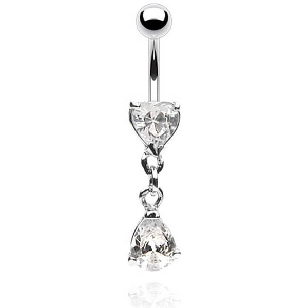 Bauchnabelpiercing Tropfen Herz beweglich Zirkonia Silber