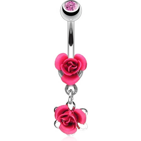 Bauchnabelpiercing Rose beweglich Metall Zirkonia Silber