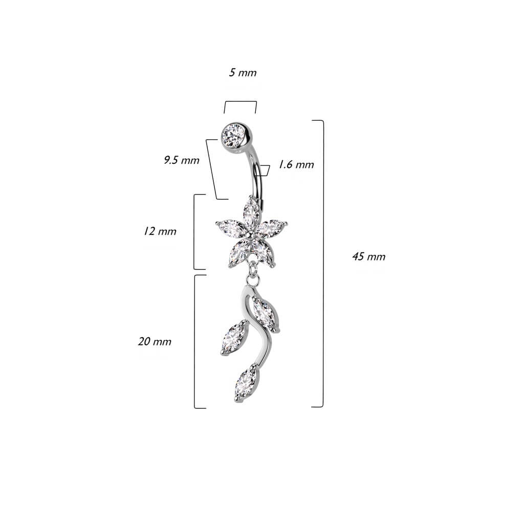 Bauchnabelpiercing Blumen beweglich Zirkonia
