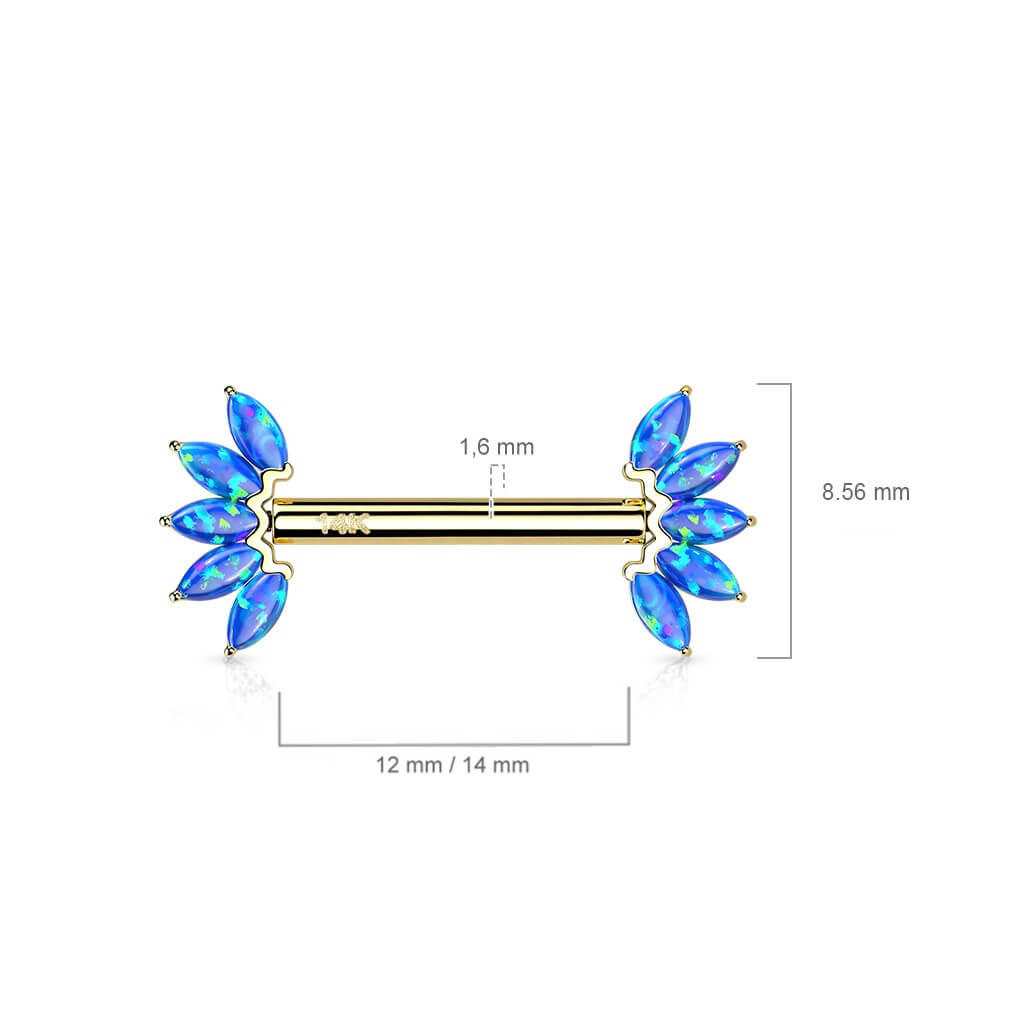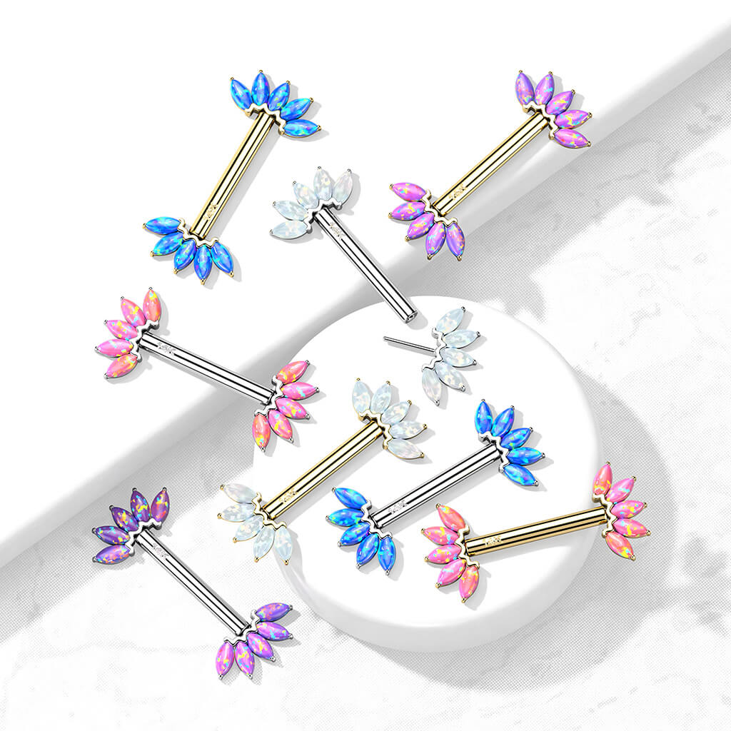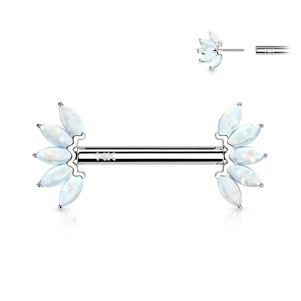 14 Karat Gold Nippelpiercing 5 Marquise Schliff Opal Gelbgold Weißgold Push-In
