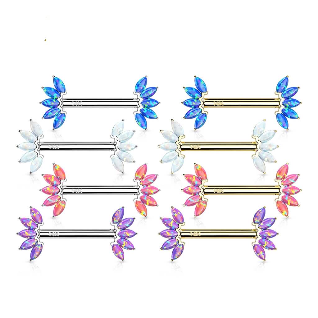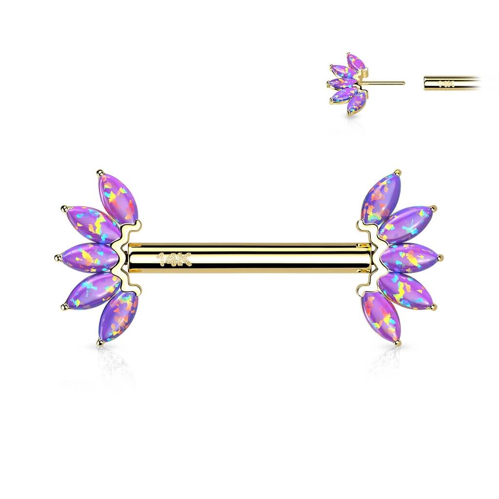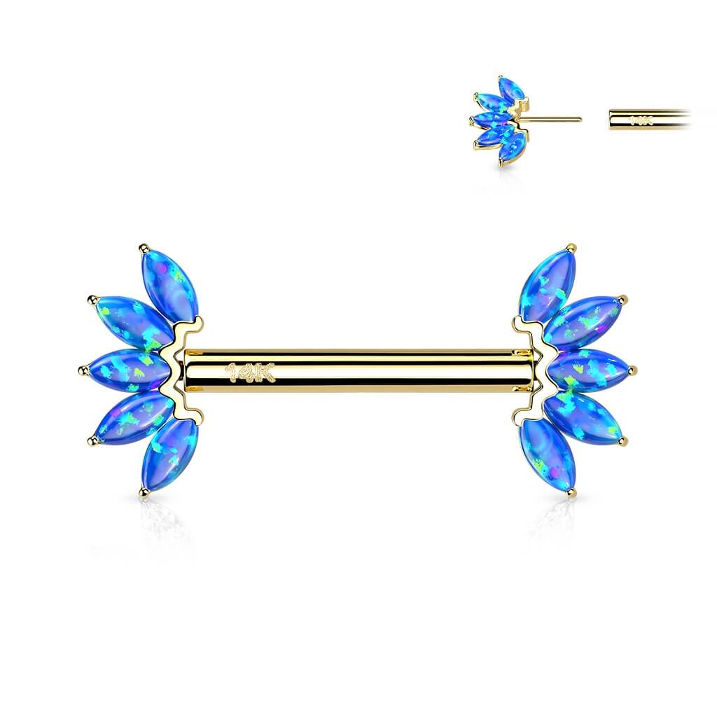 14 Karat Gold Nippelpiercing 5 Marquise Schliff Opal Gelbgold Weißgold Push-In
