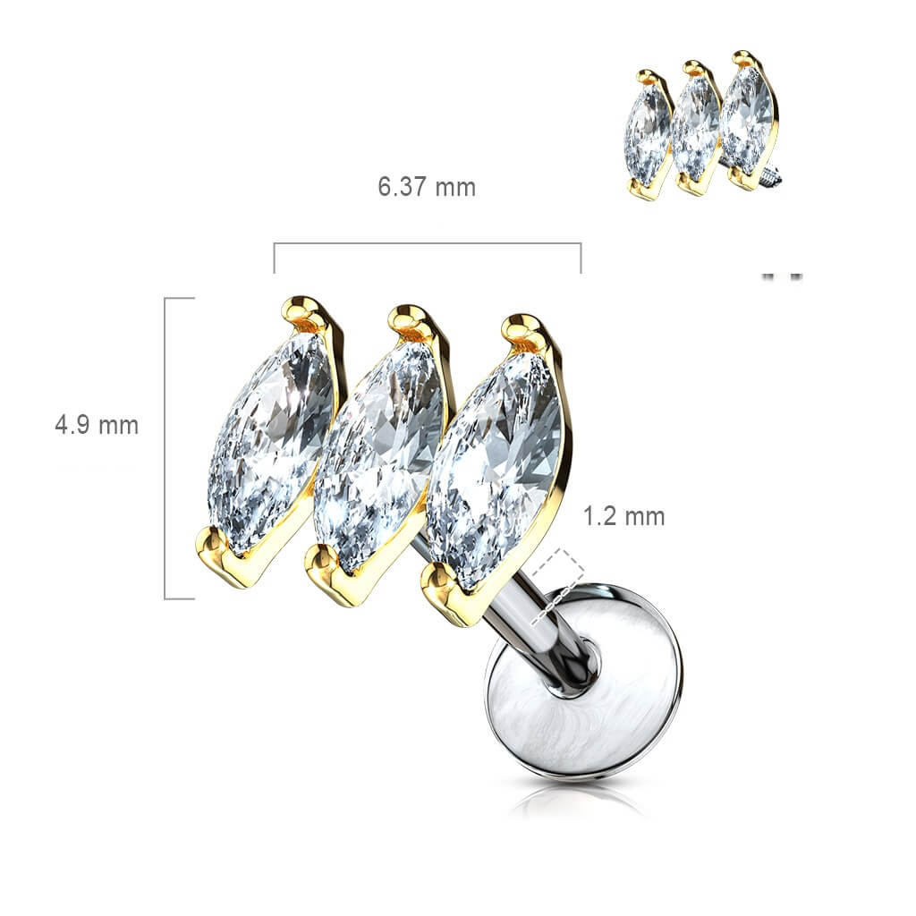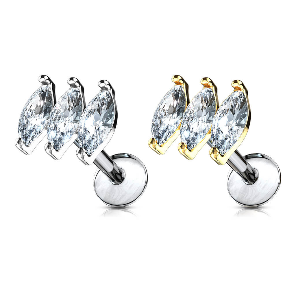 Labret Marquise Schliff 3 Zirkonia Innengewinde
