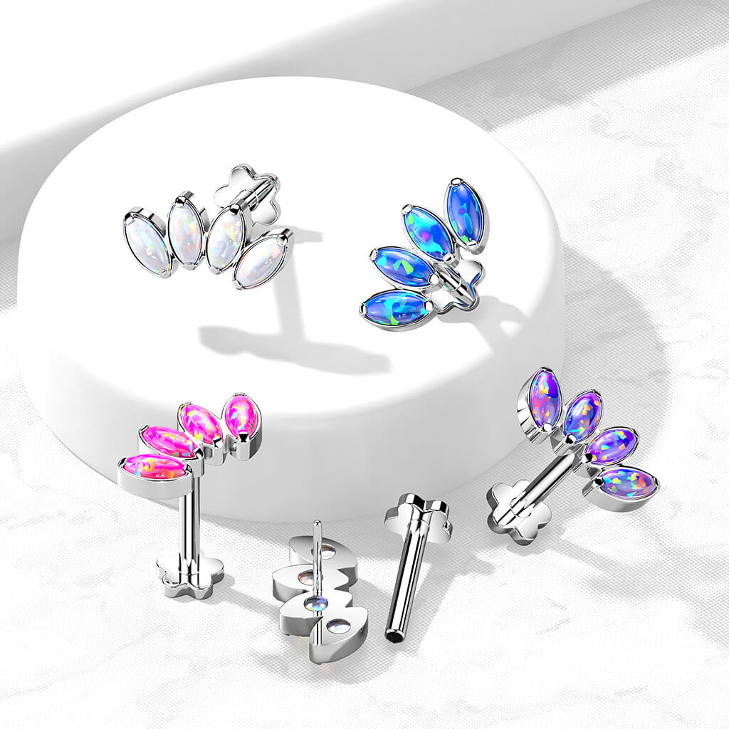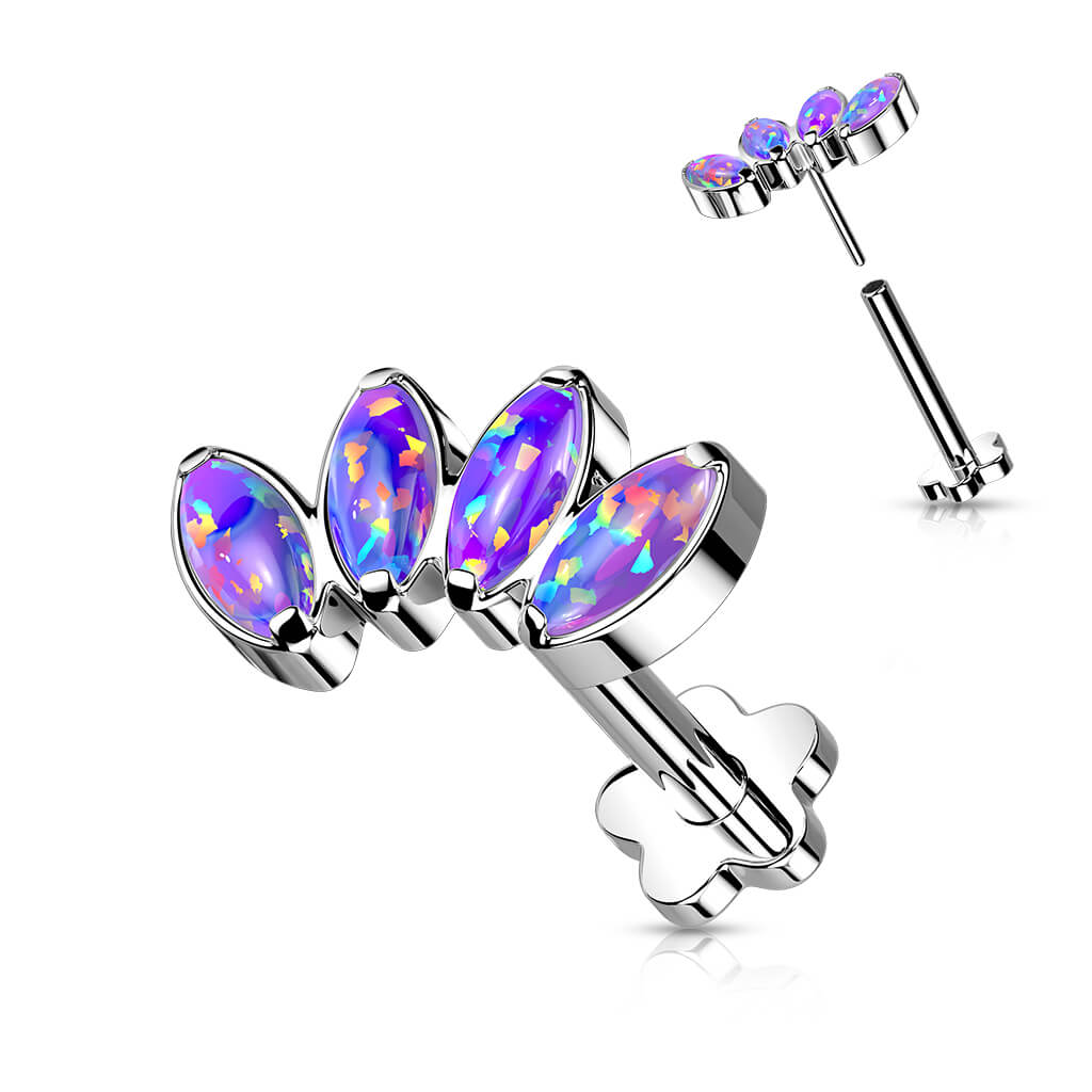 Titan Labret Marquise Schliff Opal Blumen Base Push-In