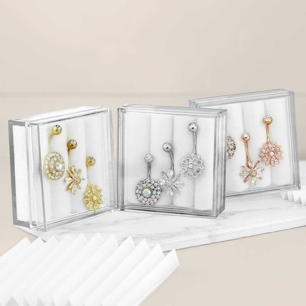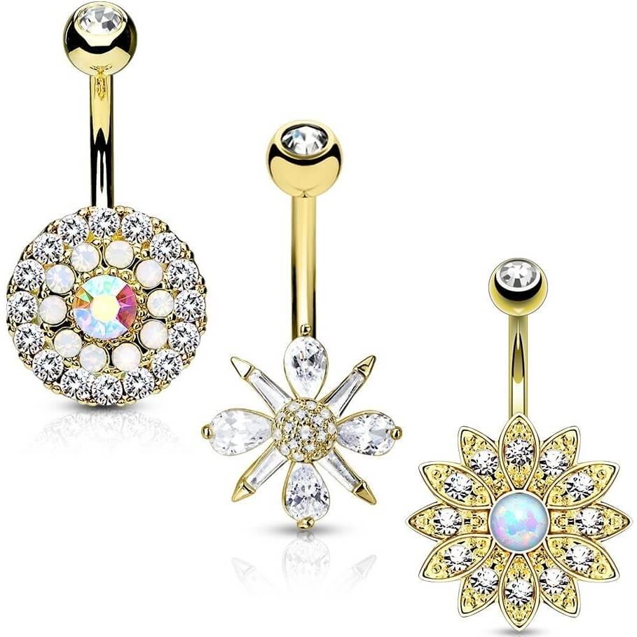 Belly Button Piercing Flowers Zirconia Opal Gold