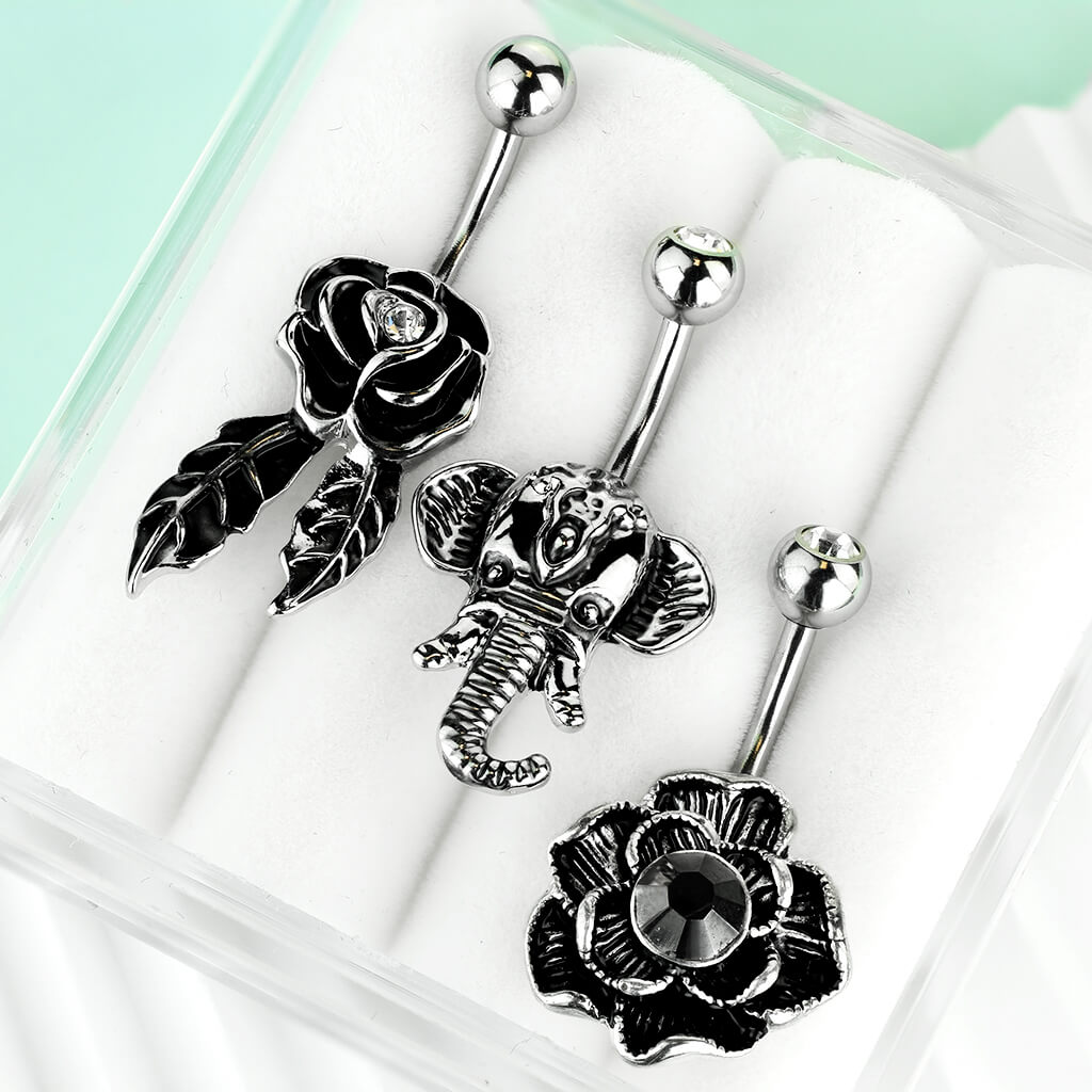 Belly Button Piercing Set Zirconia Silver