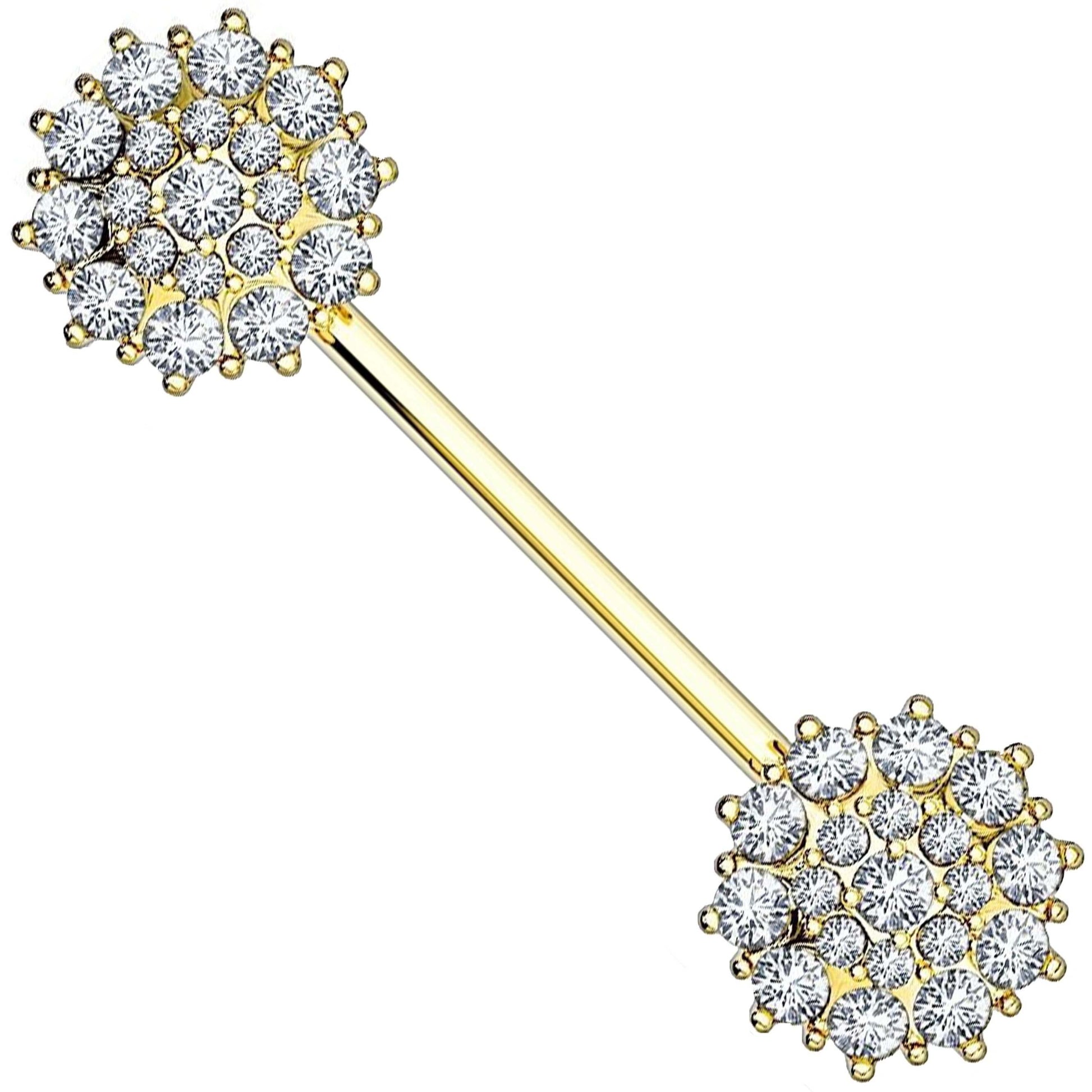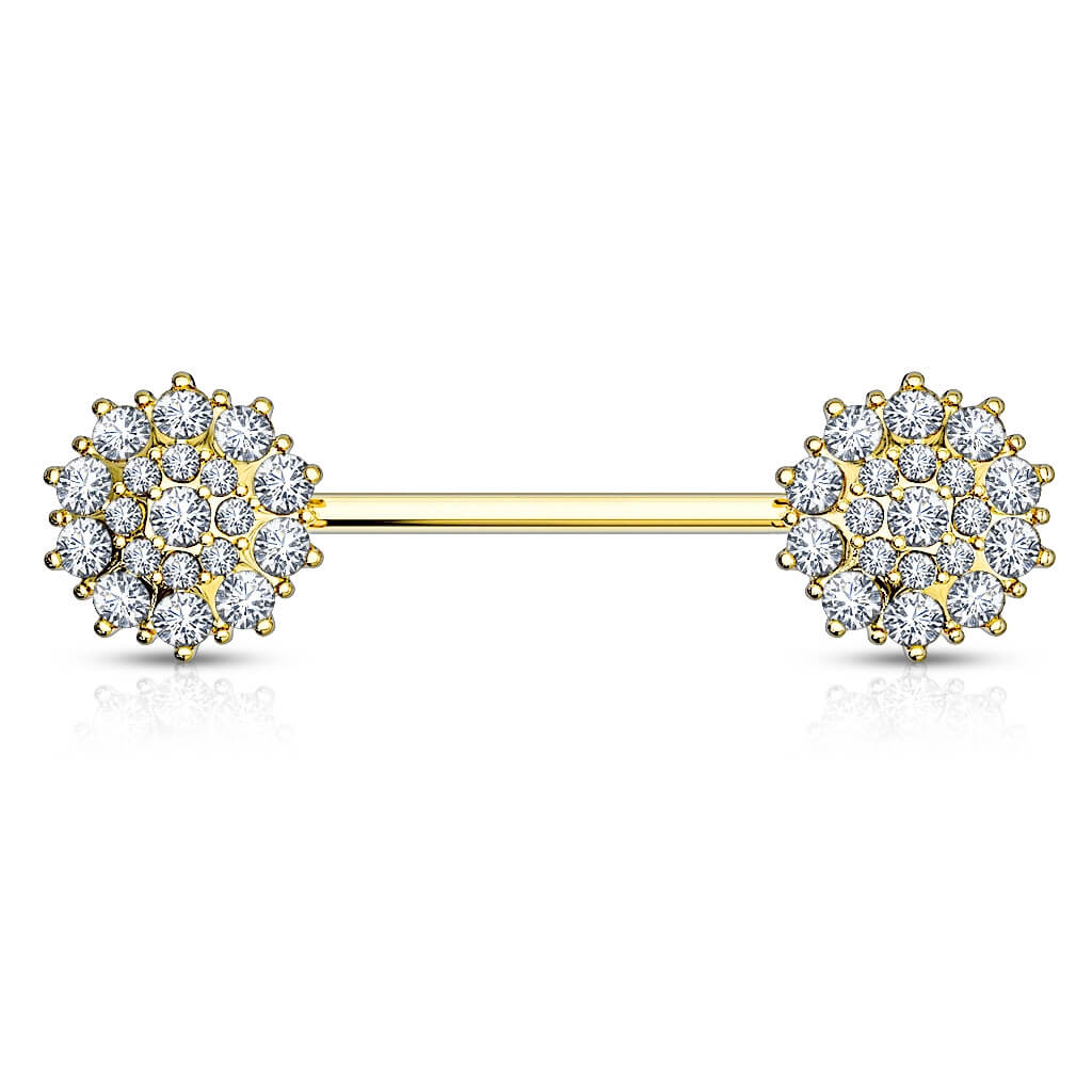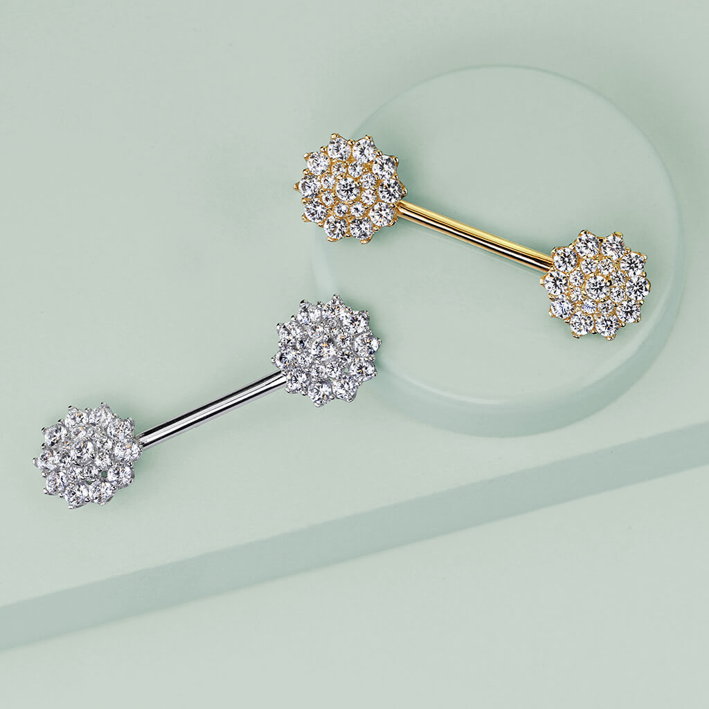 Solid Gold 14 Carat Nipple Piercing Flower Zirconia