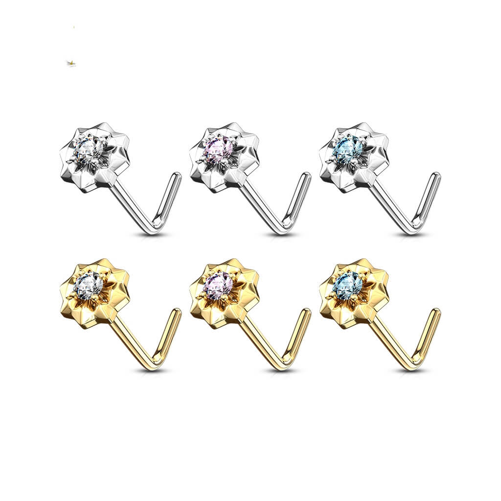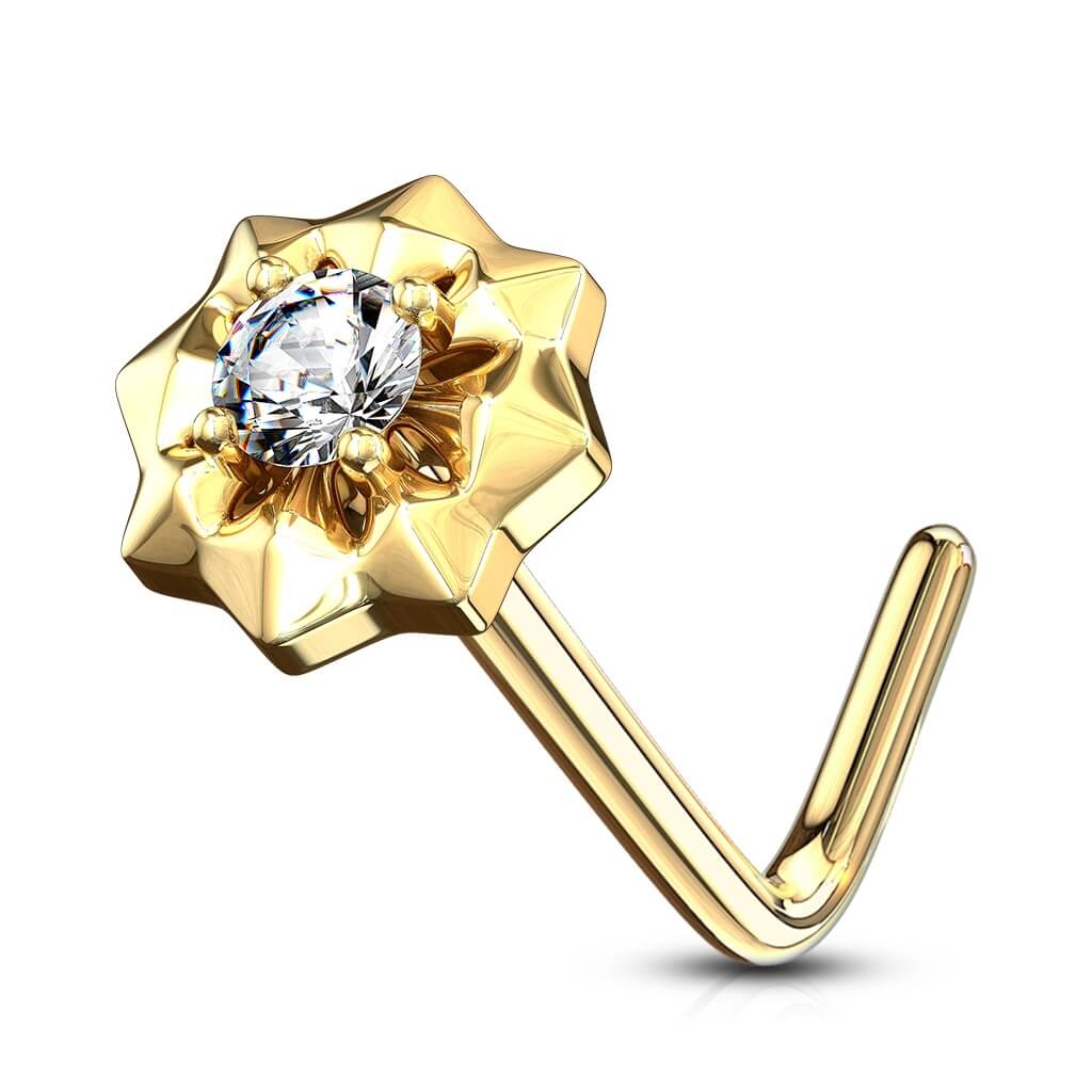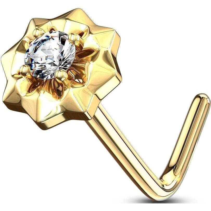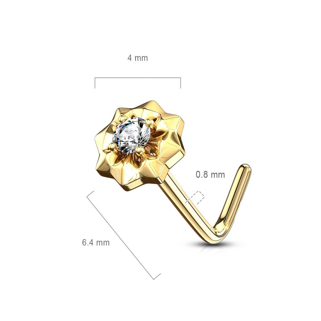 Solid Gold 14 Carat Nose L-Shape Star Zirconia