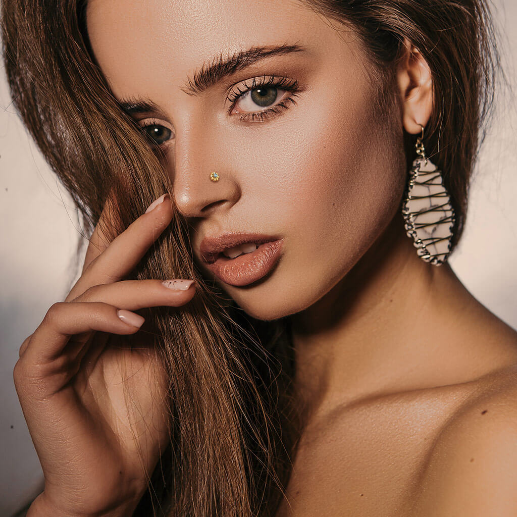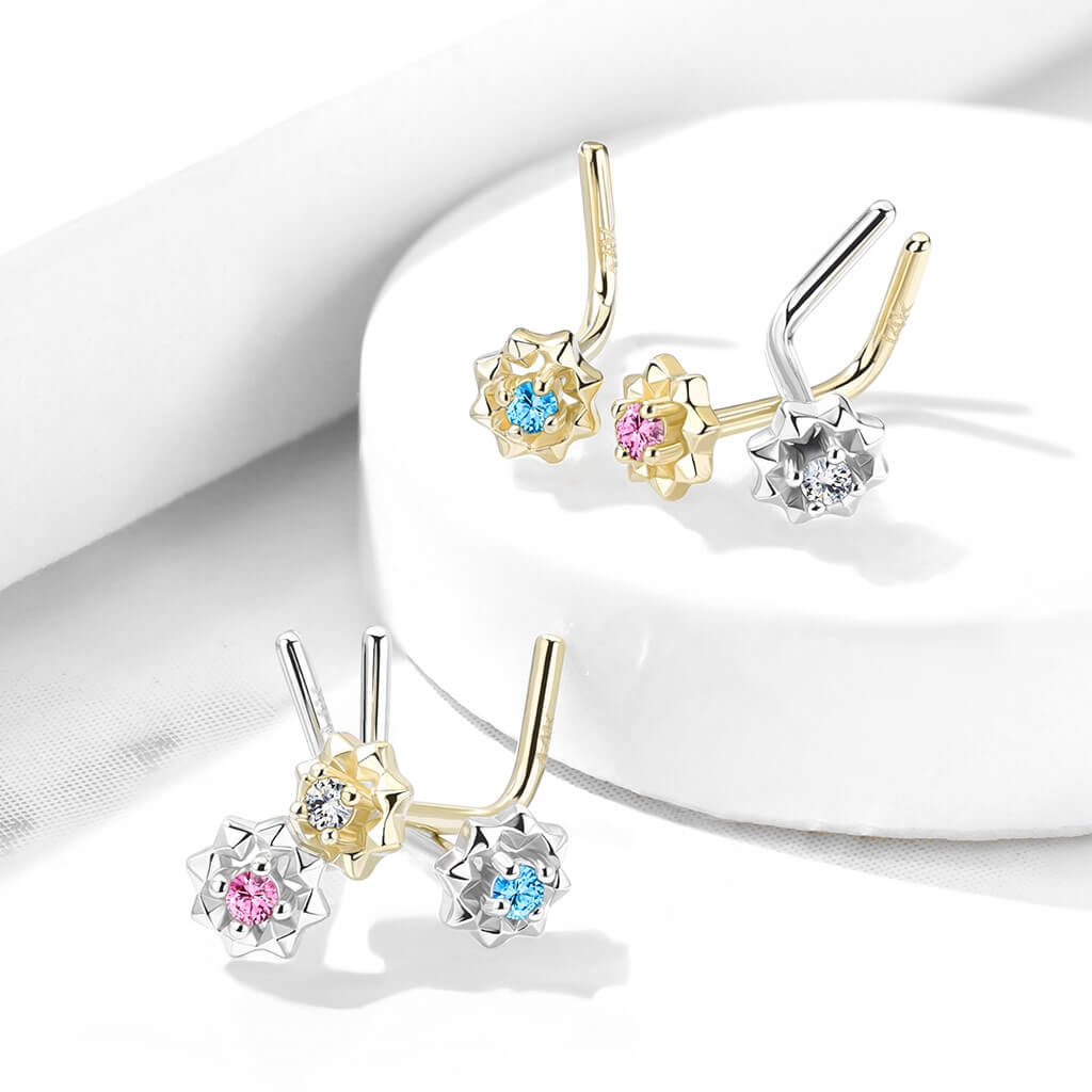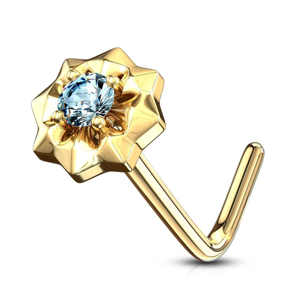 Solid Gold 14 Carat Nose L-Shape Star Zirconia