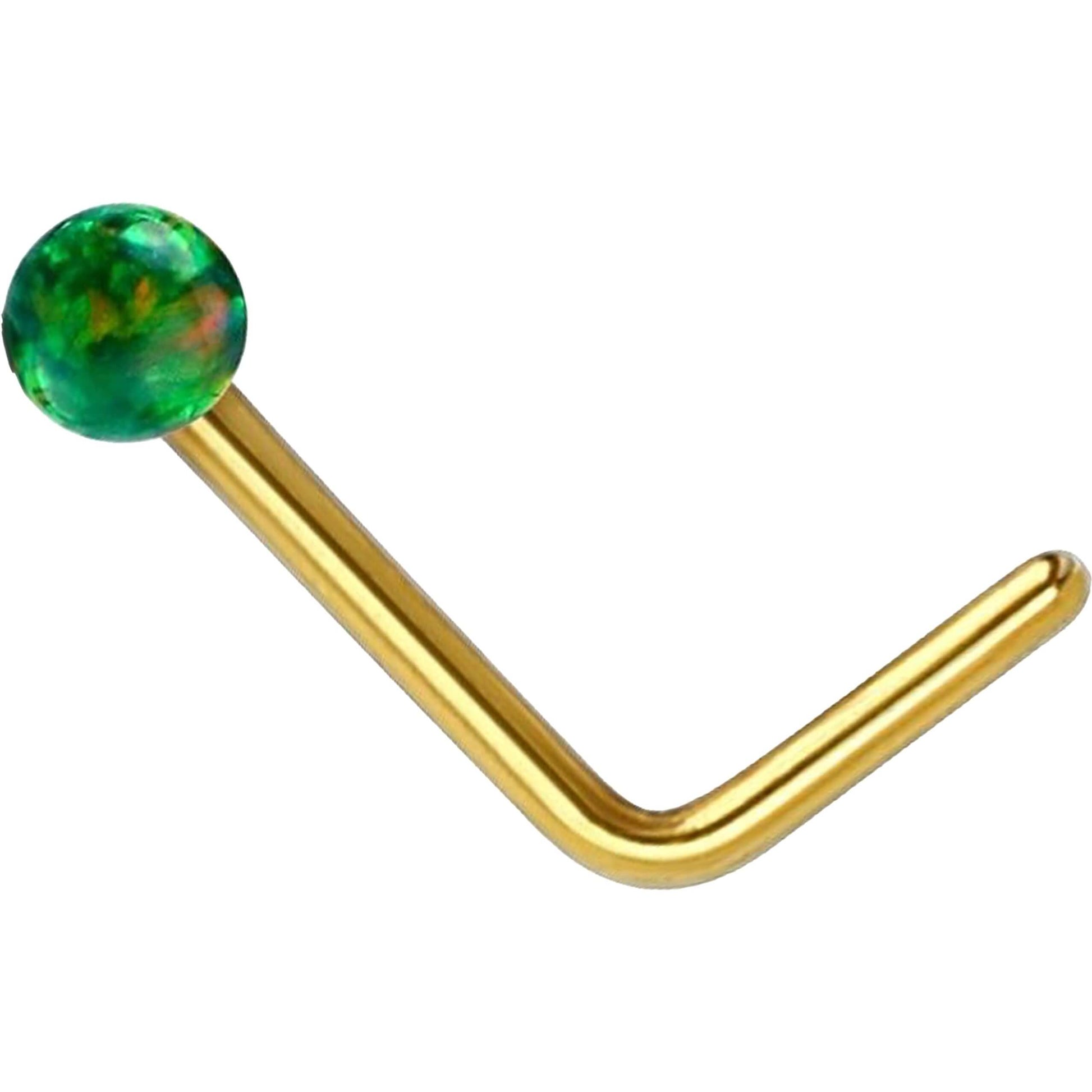 Solid Gold 14 Carat Nose L-Shape Ball Opal