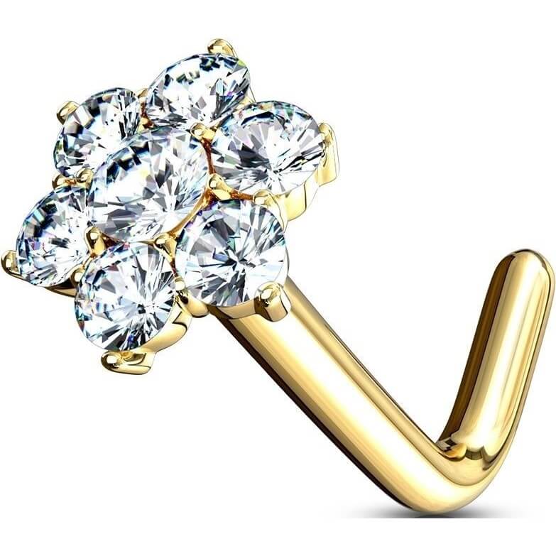 Solid Gold 14 Carat Nose L-Shape Flower Zirconia