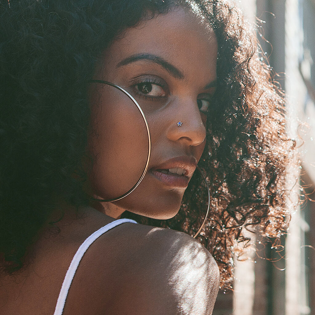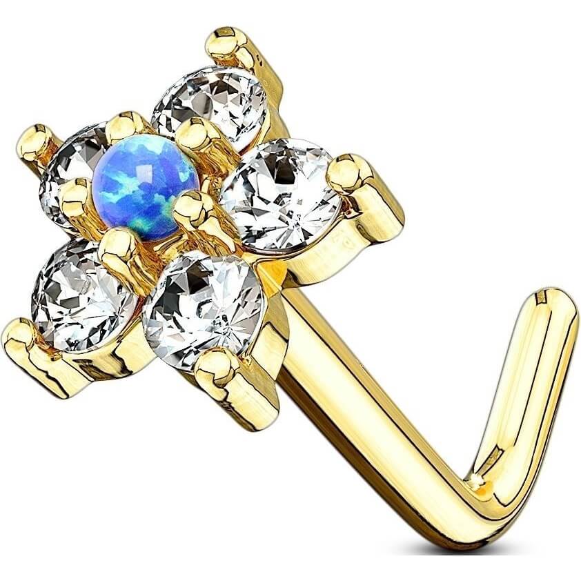 Solid Gold 14 Carat Nose L-Shape Flower Zirconia