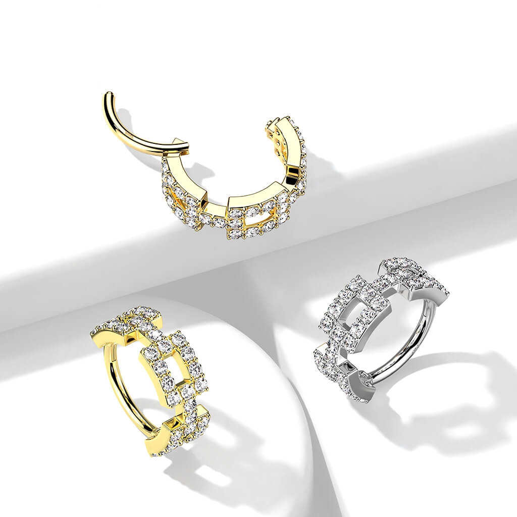 Solid Gold 14 Carat Ring Zirconia pave´setting Clicker