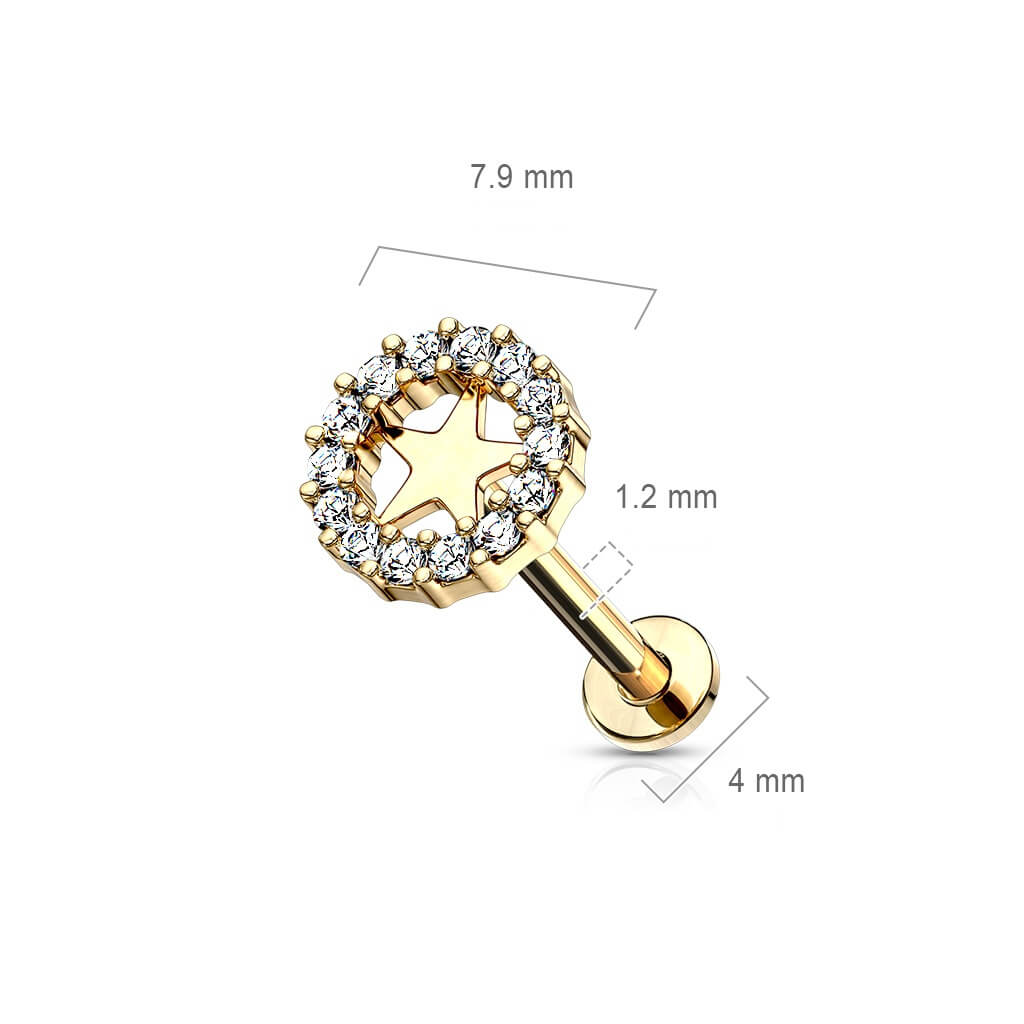 Labret Star Zirconia Internally Threaded
