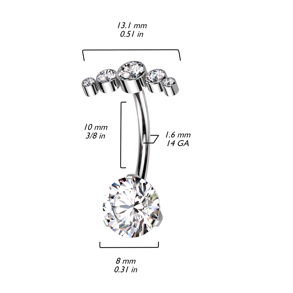 Titanium Belly Button Piercing Fan Folder Zirconia Push-In