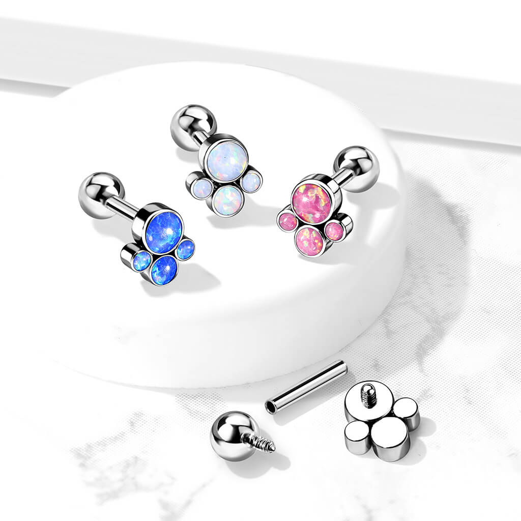 Titanium Barbell 4 Opal Flat Silver Internally Threaded