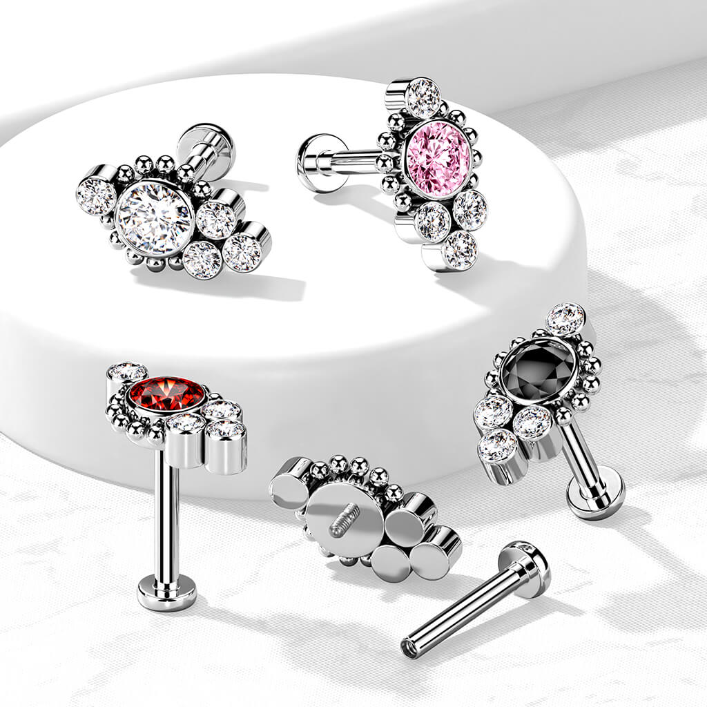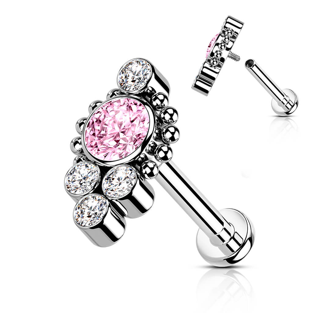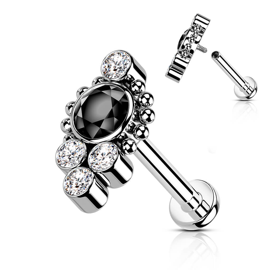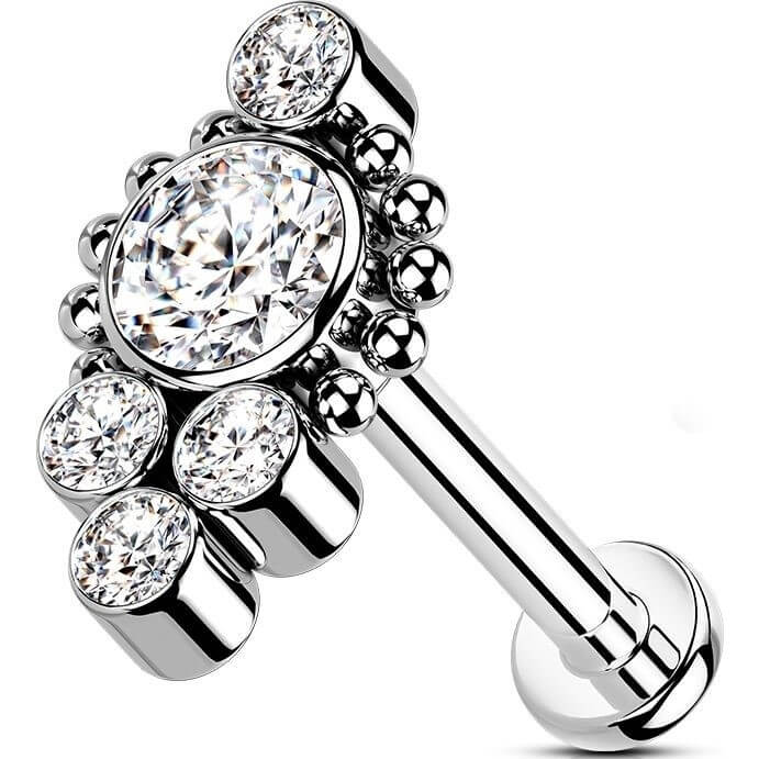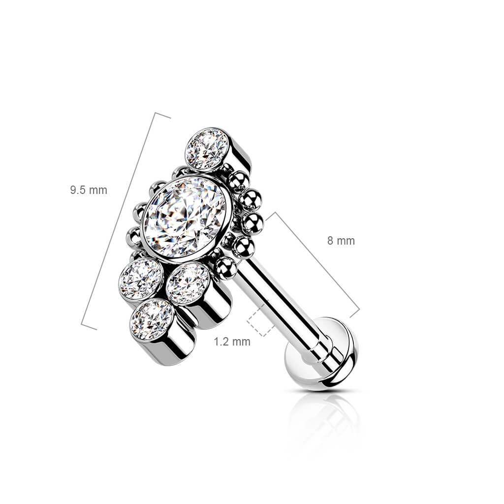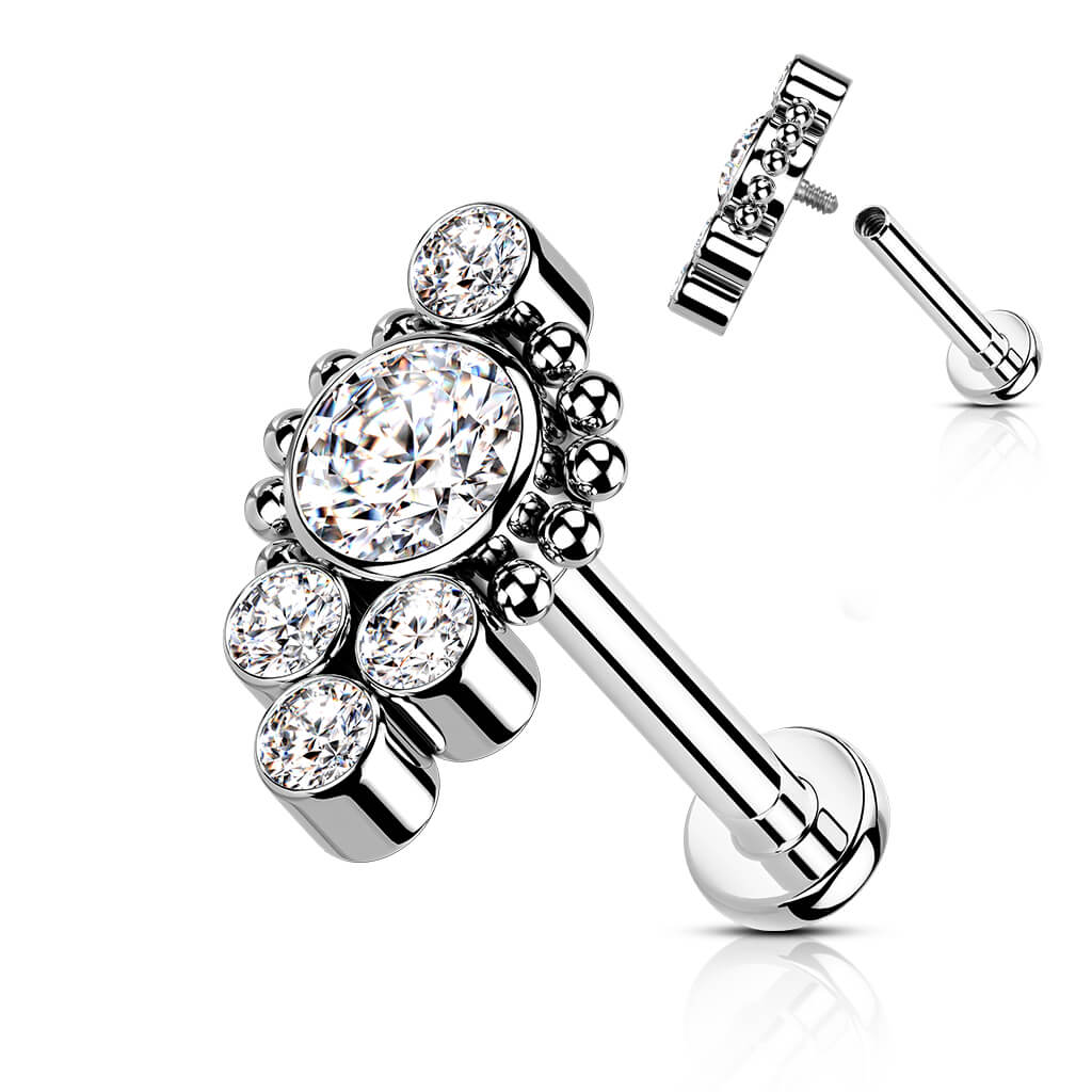 Titanium Labret 5 Zirconia Silver Internally Threaded