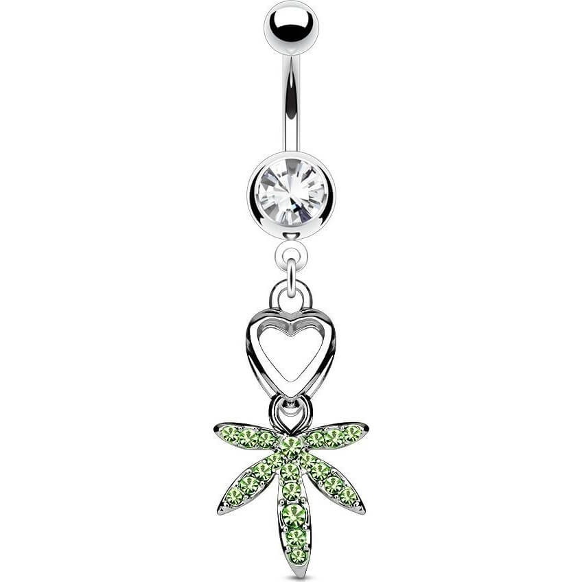 Piercing ombligo Hoja de Cáñamo coloreada colgante Circonita Plata