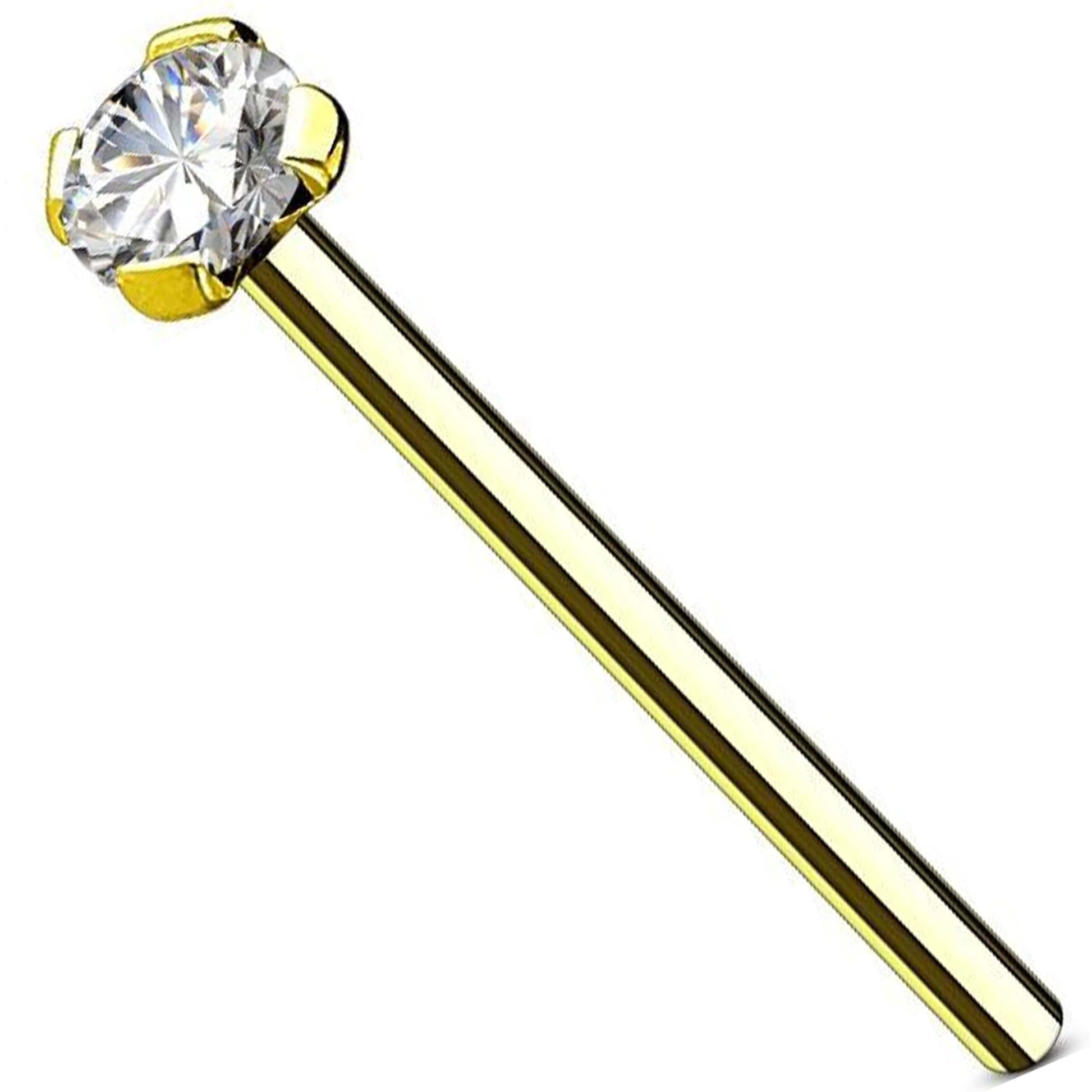 Oro 14kt Nariz Cola de pez Circonita redonda