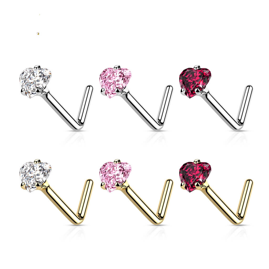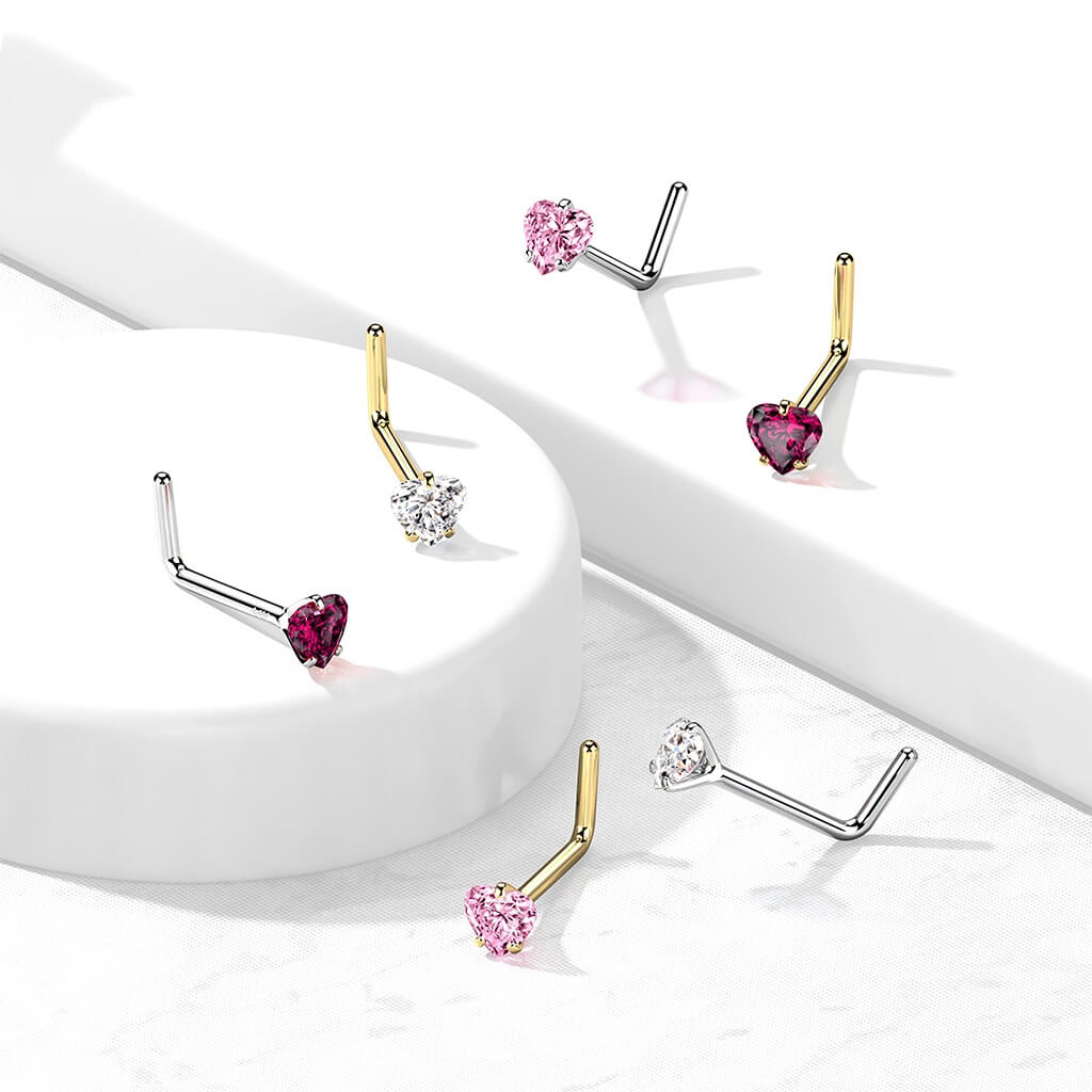 Oro 14kt Nariz en L Circonita Redonda