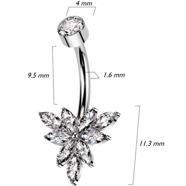 Titanio Piercing ombligo Circonitas Marquesa Rosca interna