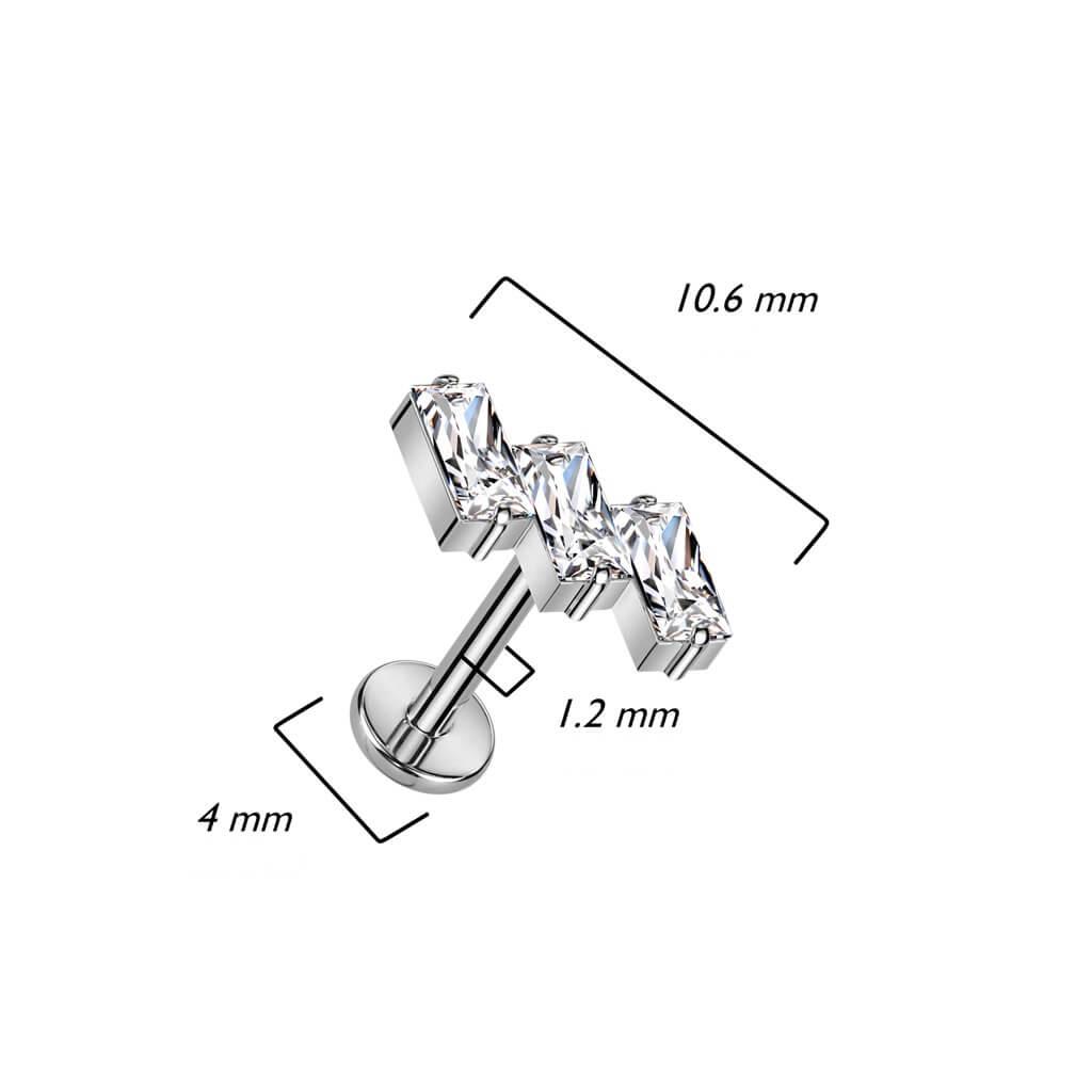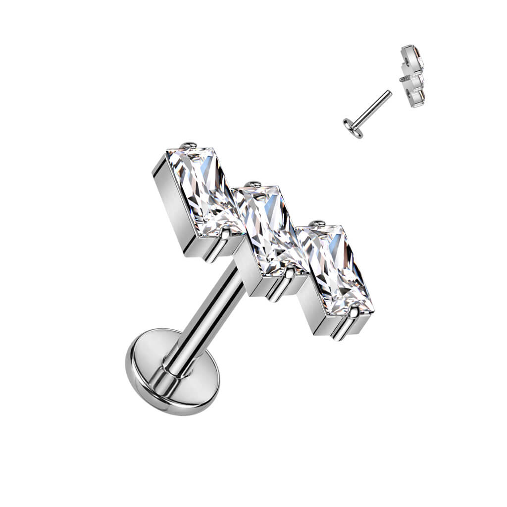 Titanio 3 Circonitas Baguette Rosca interna Labret