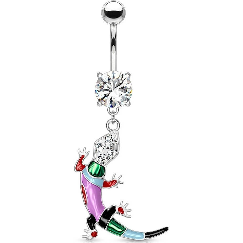 Piercing Nombril Pendentif Lézard Zircone Argent