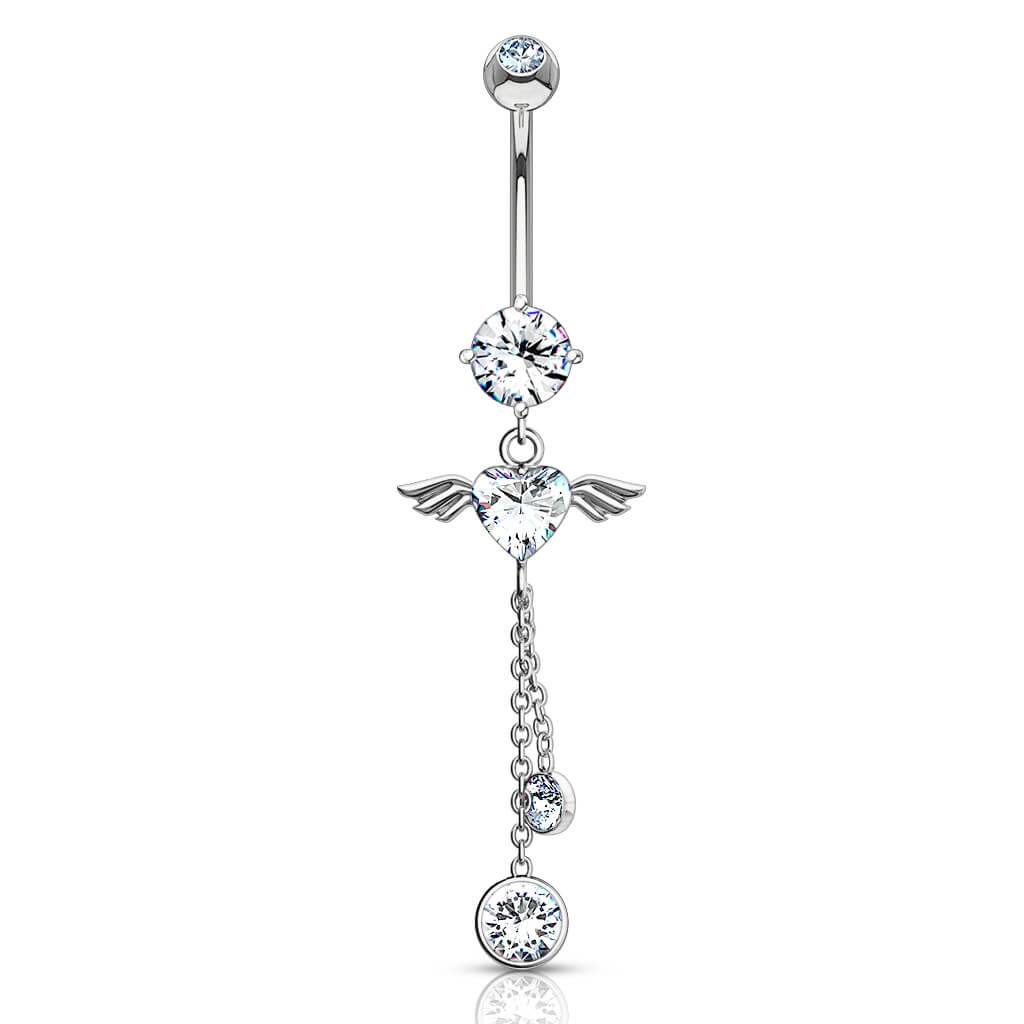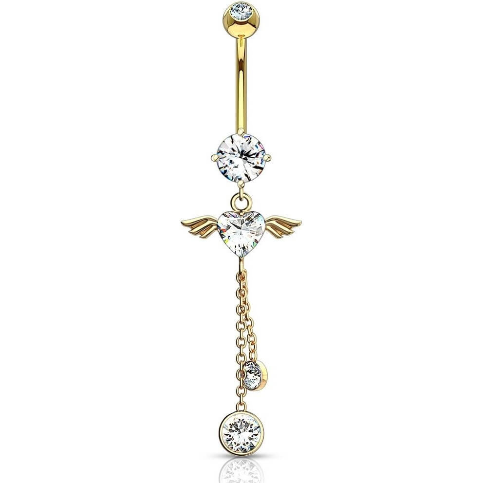Or 14kt Piercing Nombril Pendentif Ailes d´Ange Zircone