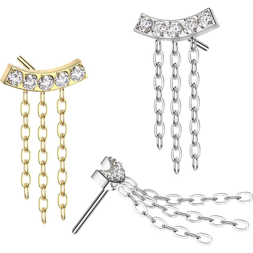 Titane Embout Triple Chaîne Pendentif Zircone Enfoncer