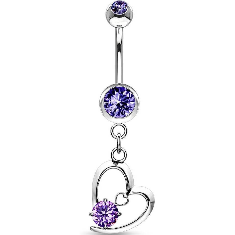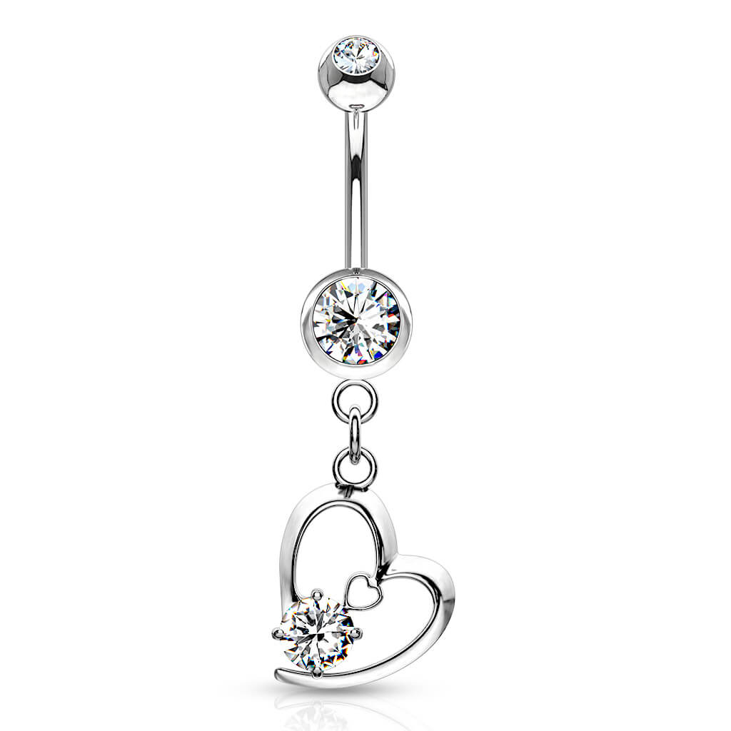 Kolczyk do pępka zawieszka serduszko cyrkonie srebrny