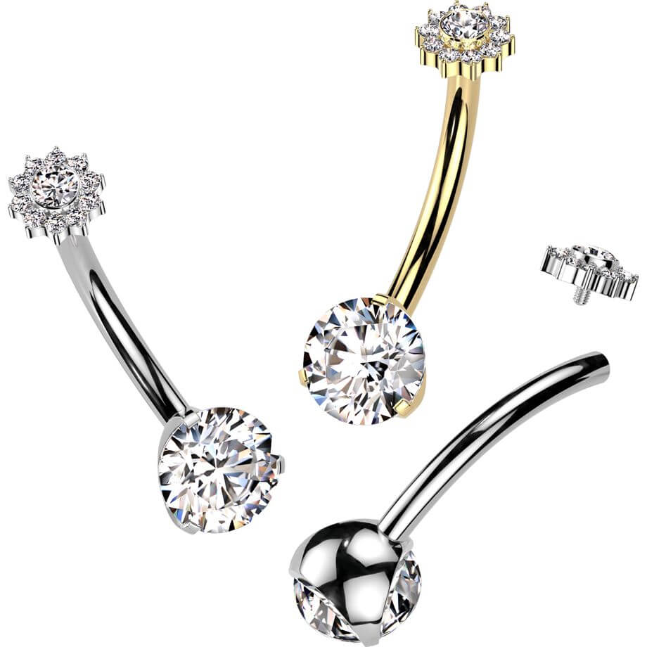 Titanium Belly Button Piercing flower zirconia Internally Threaded