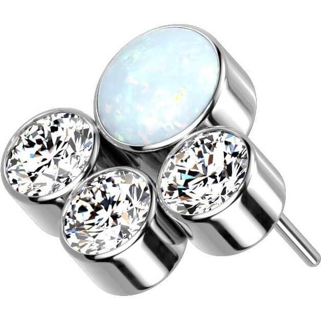 Tytan nakrętka 3 cyrkonie i opal w oprawie bezel push-in