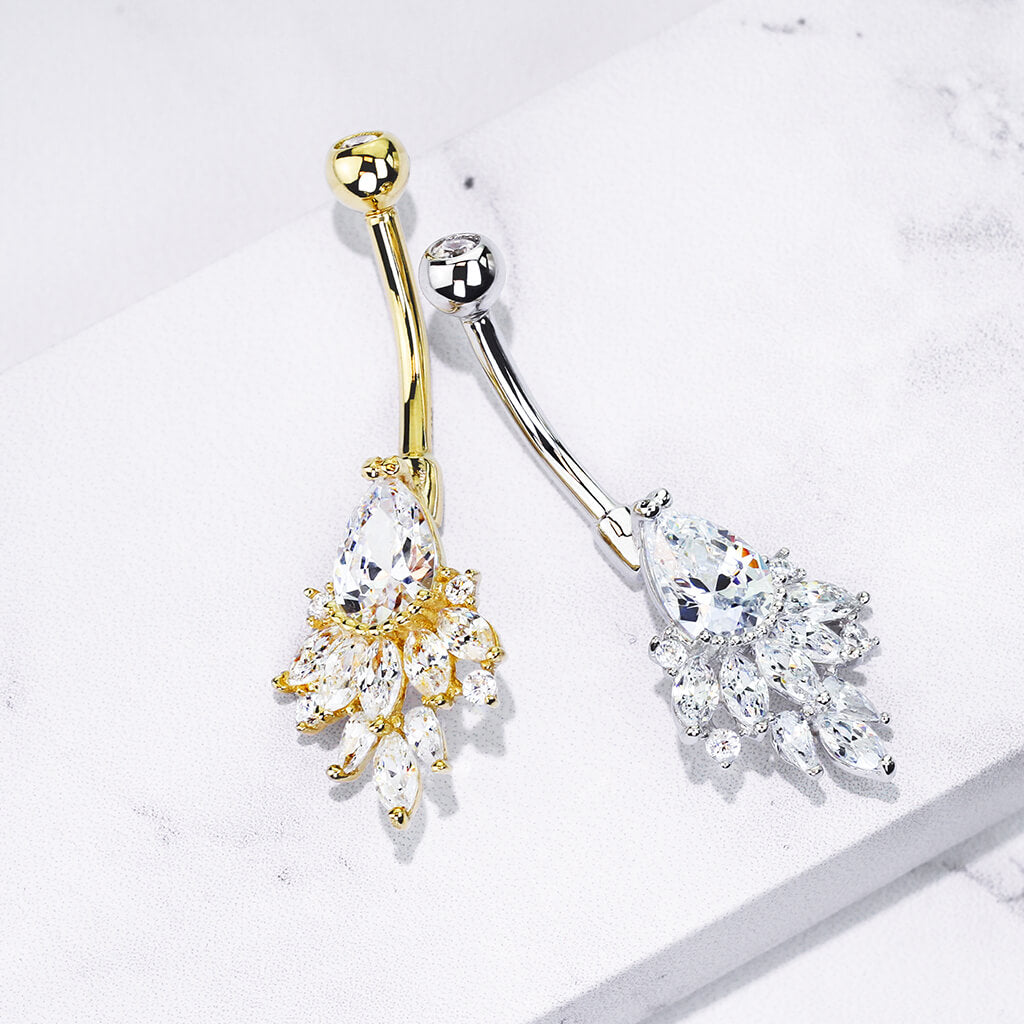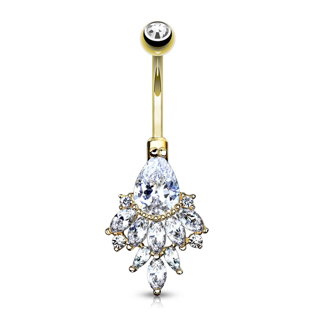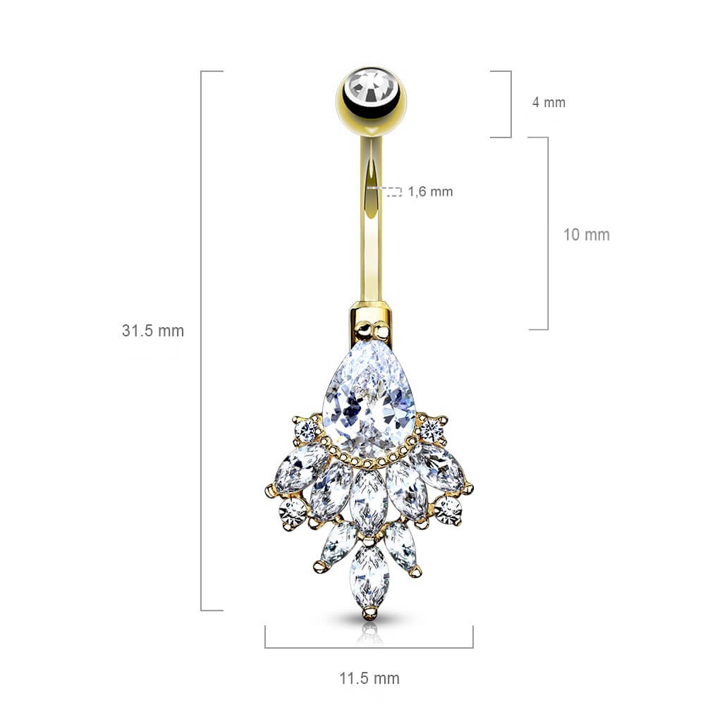 Oro 14 kt Piercing Ombelico Zirconi a pera