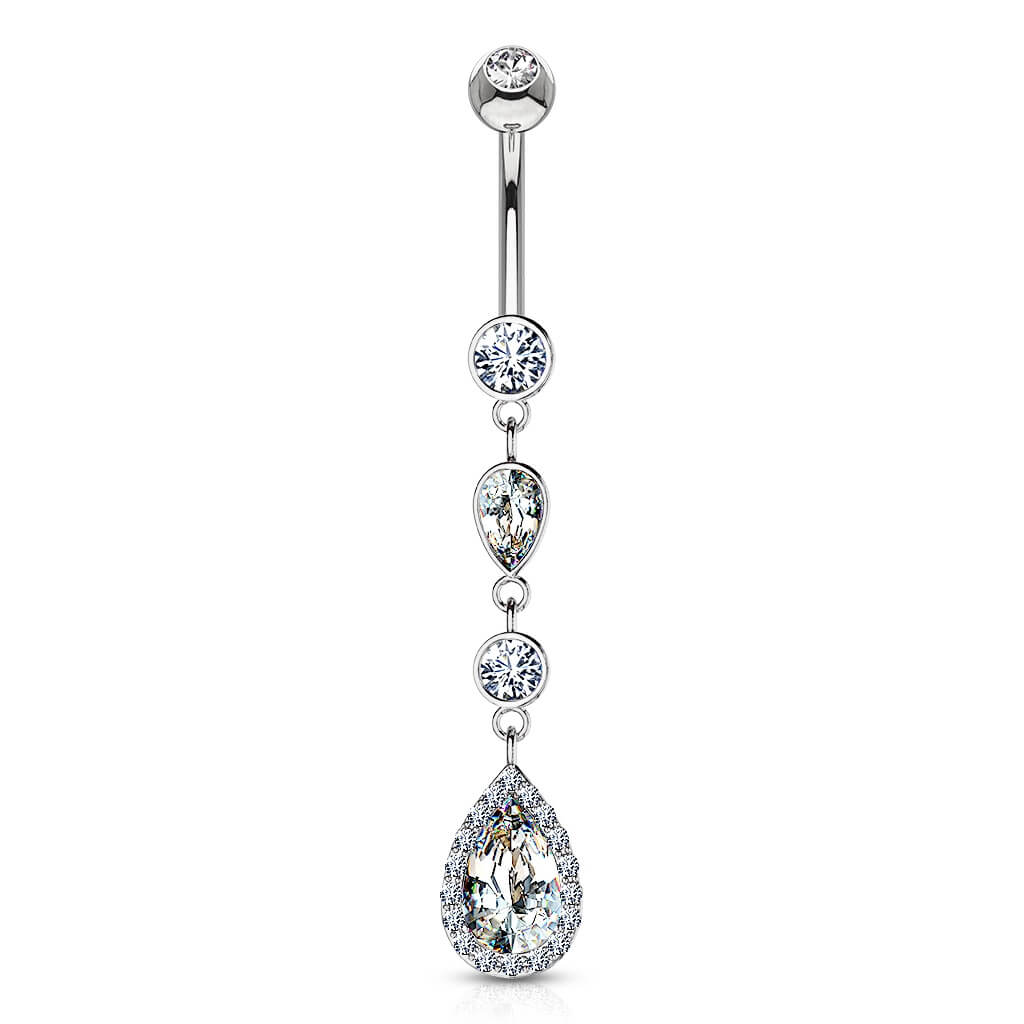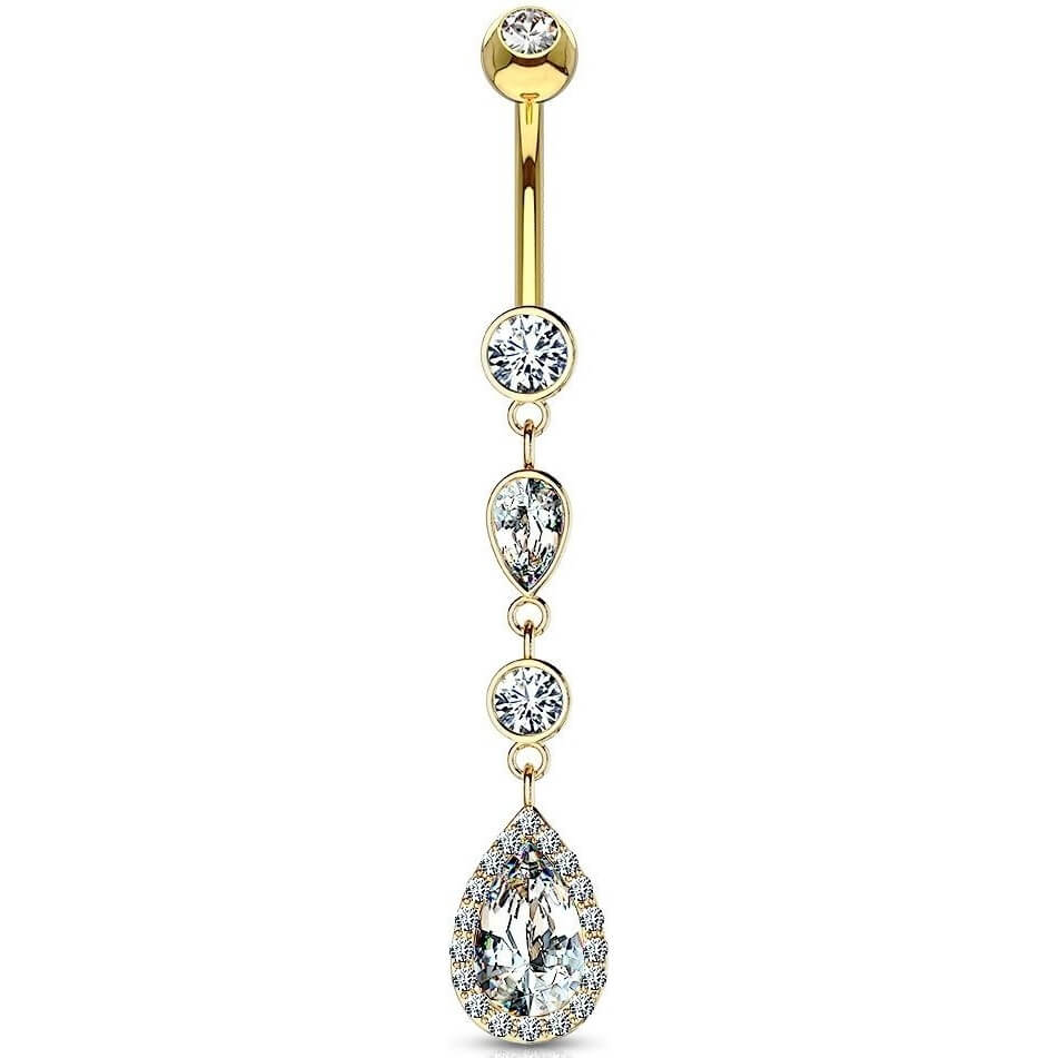 Oro 14 kt Piercing Ombelico Pendente a goccia in zircone