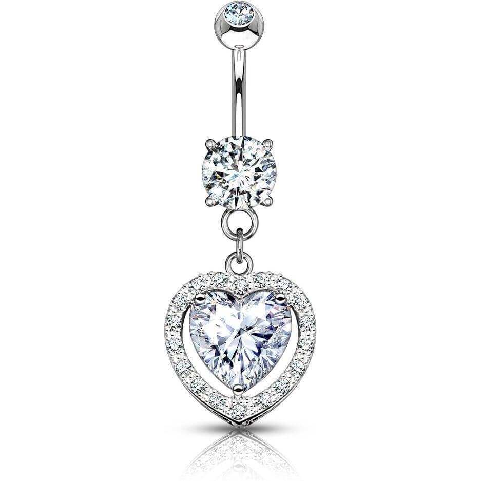 Oro 14 kt Piercing Ombelico Pendente a cuore in zircone
