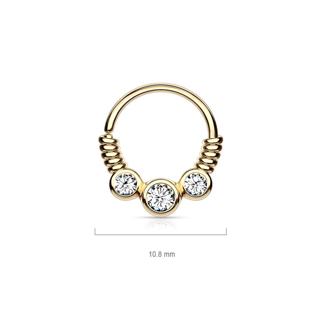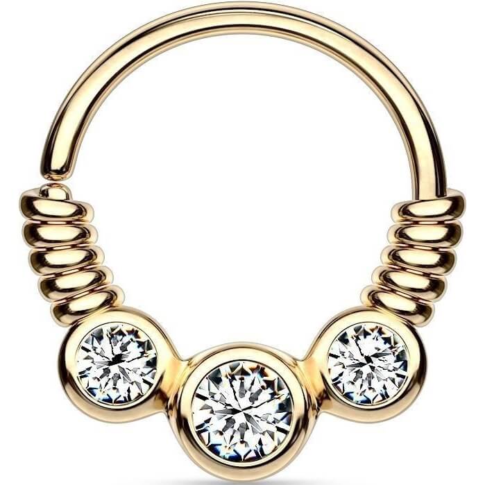 Anello Piercing Motivo a spirale con 3 zirconi Pieghevole