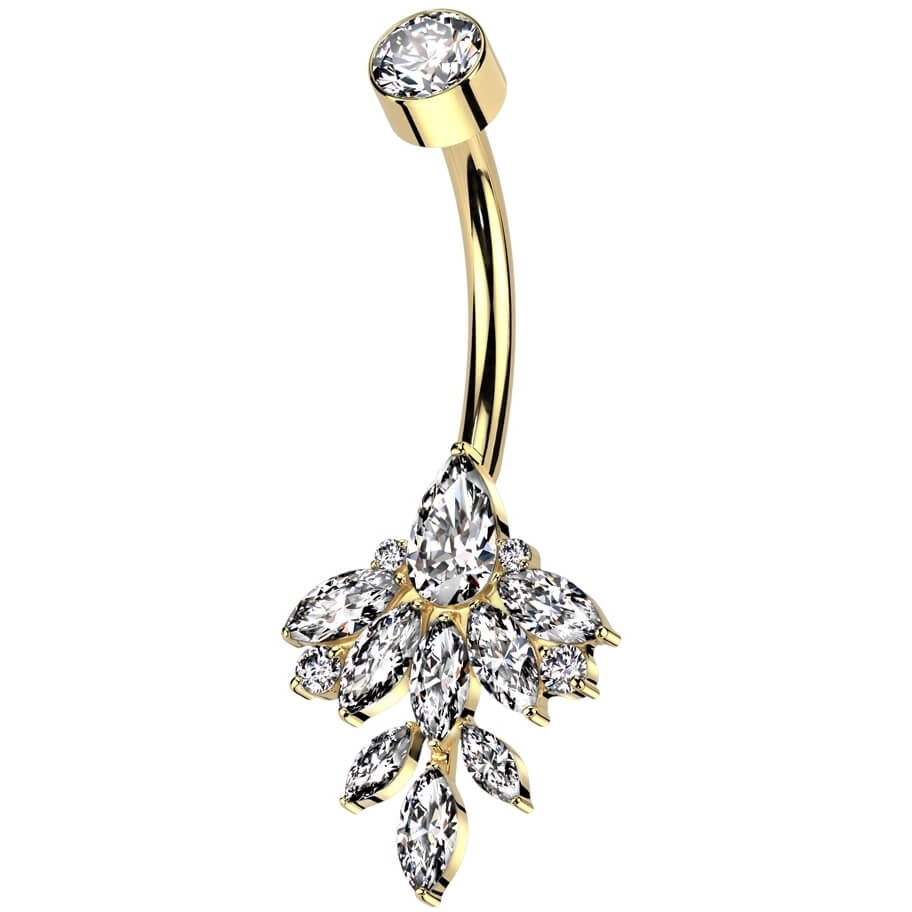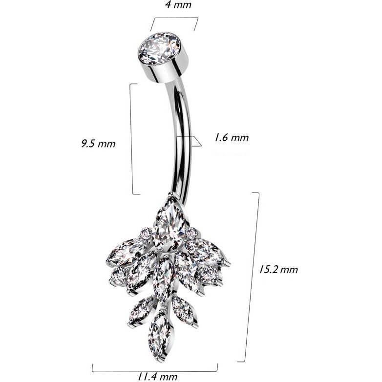 Titanio Piercing Ombelico Foglia di Zirconi taglio Marquise Filettatura Interna