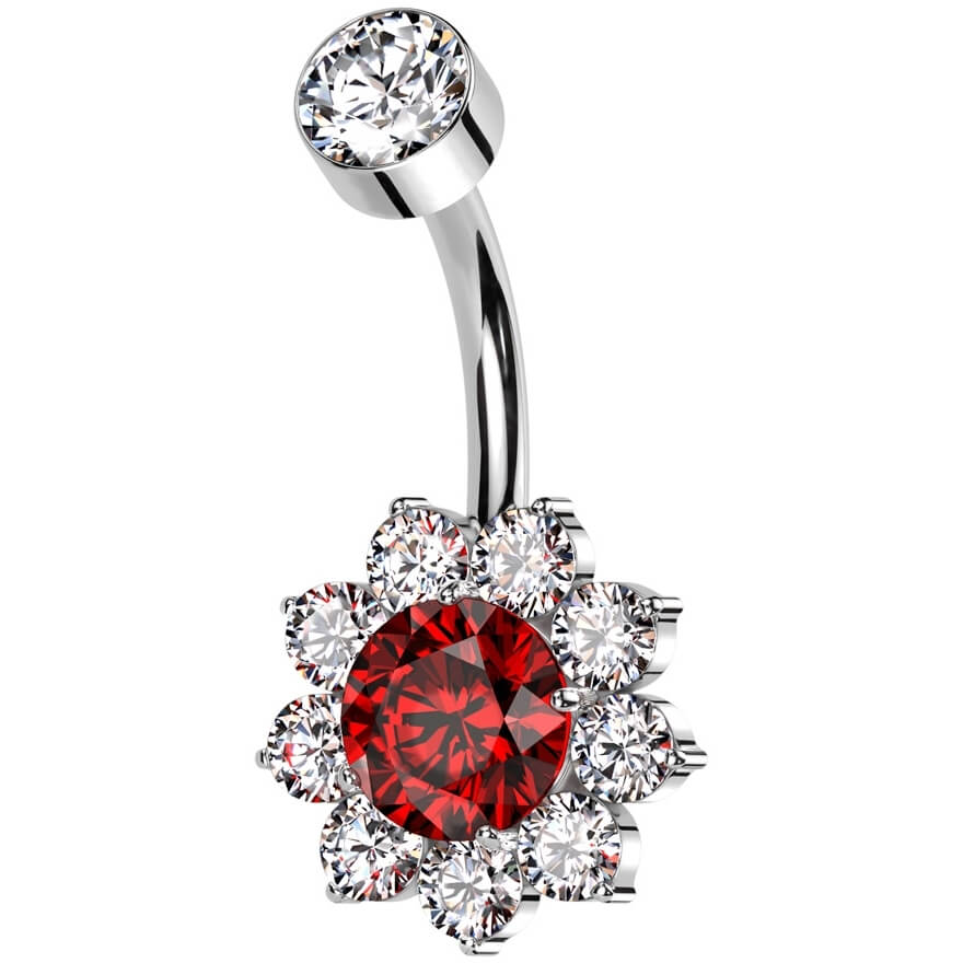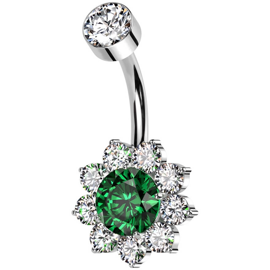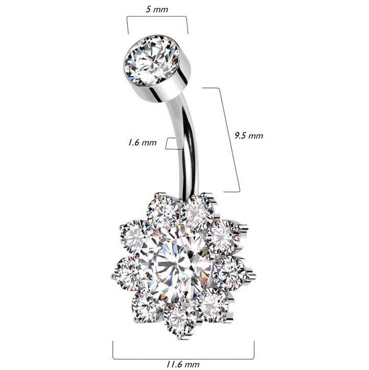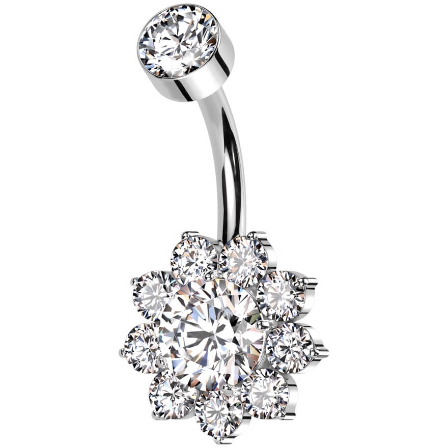 Titanio Piercing Ombelico Fiore di Zirconi Filettatura Interna