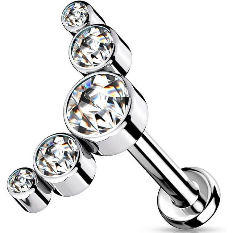 Titanio Labret 5 cilindri argento con zirconi Filettatura Interna